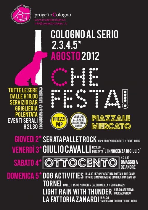 Dal 2 al 5 agosto 2012 abbiamo organizzato la seconda edizione di CheFesta! Anche quest’edizione è stata caratterizzata da ottimo cibo e musica, ma soprattutto da tanto divertimento.