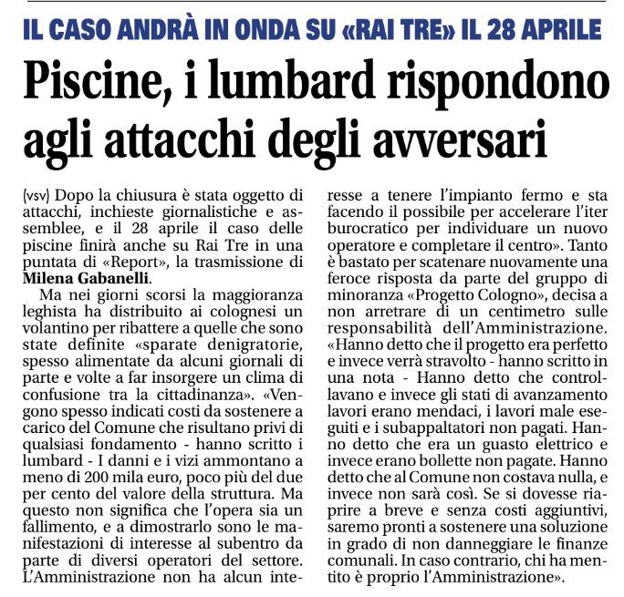 Rassegna Stampa Piscine di Cologno: la Lega minimizza, pC risponde – GdT 4 aprile 4 Aprile 2014 da progettocologno