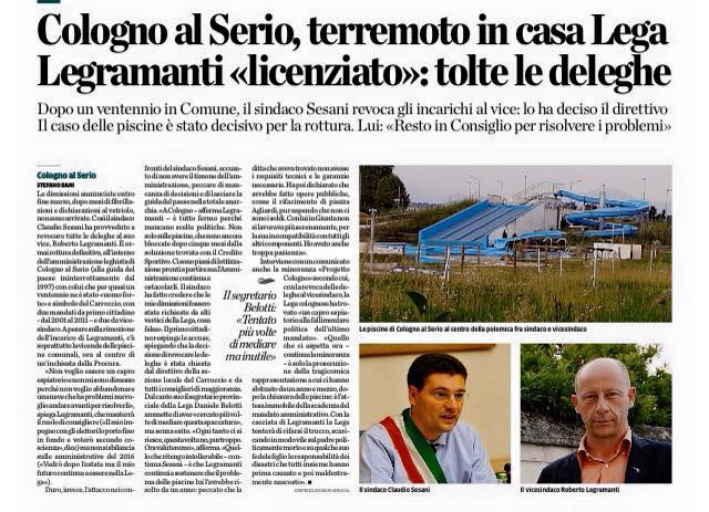 Rassegna Stampa Terremoto nella maggioranza – L’Eco di Bergamo del 2 aprile 2015 3 Aprile 2015 da progettocologno Qui il comunicato stampa di progettoCologno.